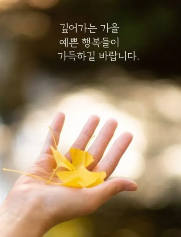 깊어가는 가을만큼 당신의 마음도 풍요롭기를 가을이 깊어갈수록 우리의 마음도 풍요로워집니다. 오늘 하루도 감사하는 마음으로 보내세요.