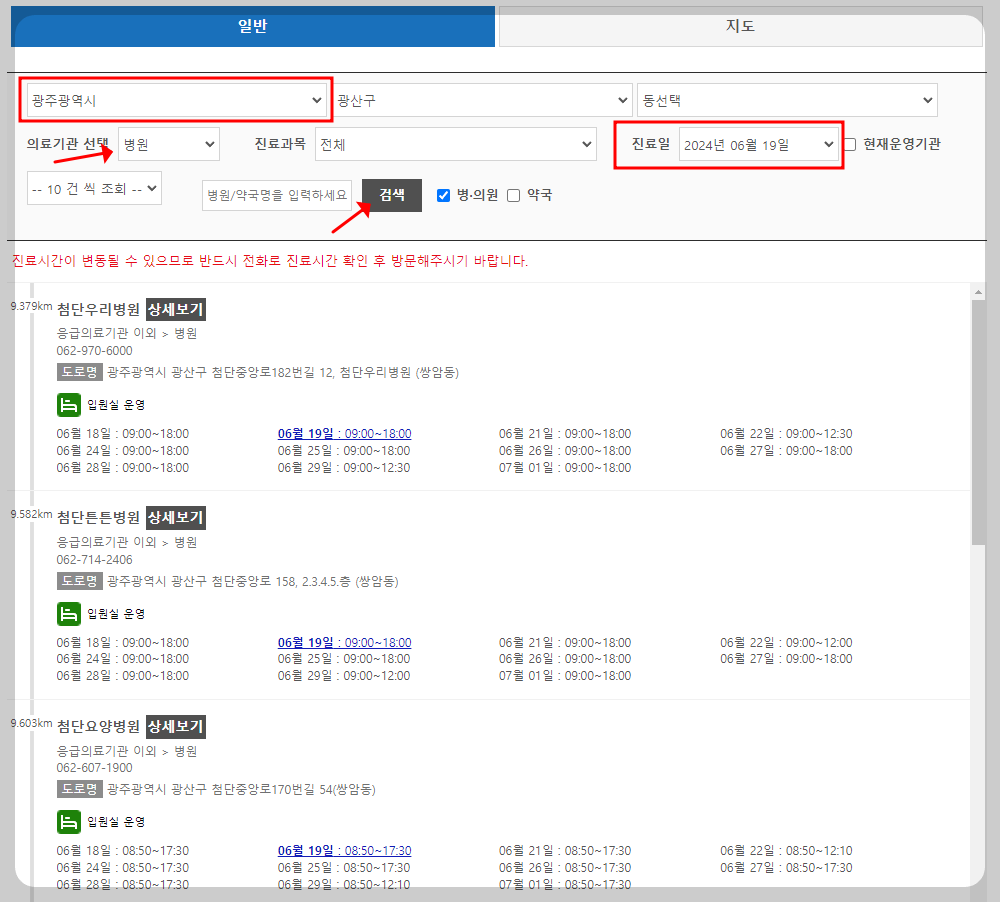 광주광역시 광산구 문 여는 병원 찾기입니다.