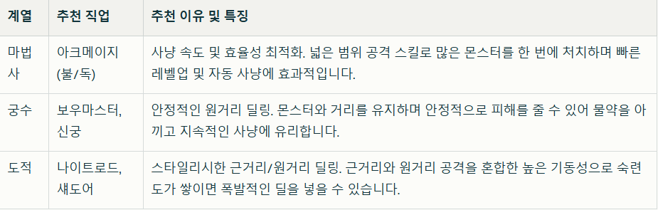직업 추천: 방치형 자동 사냥에 최적화된 선택