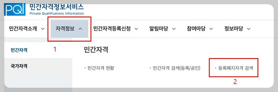 가장 정확하고 최신 정보는 민간자격 정보서비스(PQI)에서 직접 확인하시는 것을 추천합니다. 이 웹사이트는 고용노동부와 한국직업능력연구원에서 운영하며, 국내 모든 등록/공인 민간자격의 현황과 폐지 여부를 조회할 수 있는 공식적인 창구입니다.