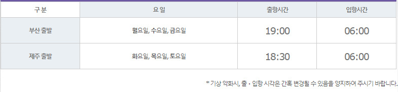 매주 부산에서 월, 수, 금 3회 출발했는데 지금은 임시 중단이라 아쉽네요.