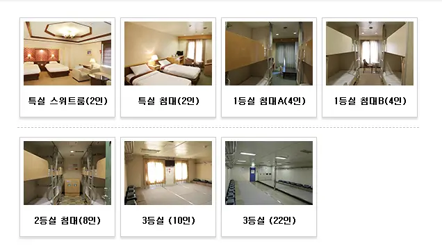 객실정보입니다. 3등실만 타고 제주도 가보았는데 특실 정말 좋네요.