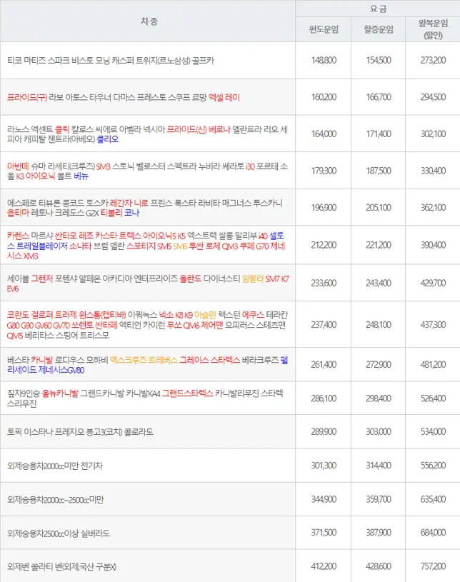임시 중단이 풀리고 배가 오가면 아래 가격에 따라 차량선적 가격이 정해지는데요. 성수기에는 조금 더 비싸다고 하니 참고하세요.