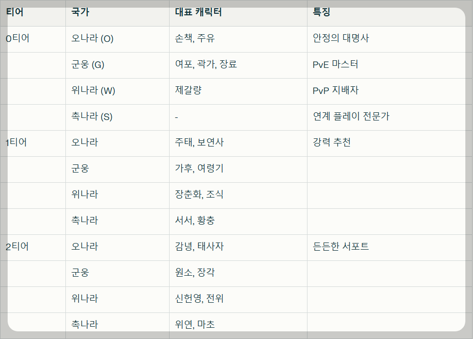 가장 중요한 것은 '국가 시너지'입니다! 아무리 좋은 무장이라도 혼자만 다른 국가라면 '섬'처럼 고립됩니다.