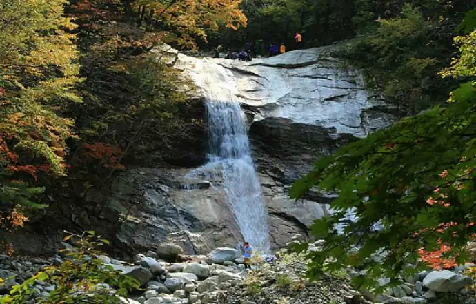 2. 비룡폭포: 폭포수와 단풍이 어우러져 한 폭의 그림 같은 풍경을 자랑합니다. 비교적 완만한 길이라 가볍게 산책하며 단풍을 감상하기 좋습니다.
