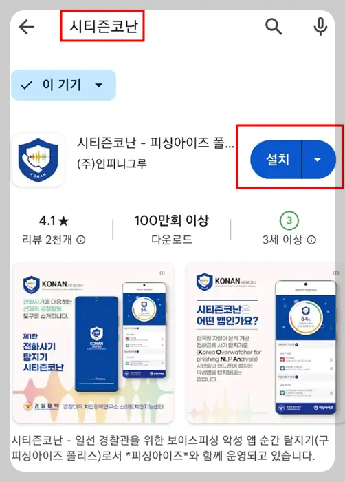 경찰대학 치안정책연구소와 인피니그루에서 공동으로 개발한 시티즌코난 앱을 사용하여 악성 앱으로부터 자유로워 지시길 바랍니다.