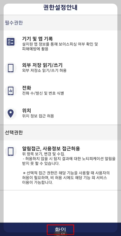 열기 들어가면 '권한설정안내'가 나오는데 바로 맨 아래 확인 눌러주세요.