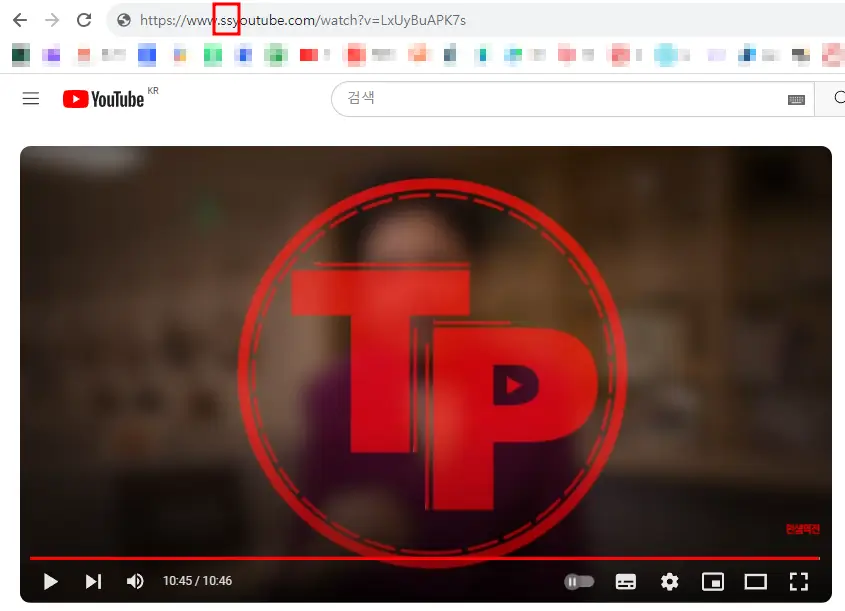 2. 예를 들기 위해 유튜브 영상을 하나 가지고 왔습니다. 이제 저위에 주소창에 "SS"만 넣어주시면 됩니다.
