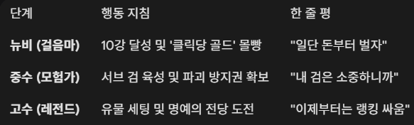 파괴 확률이 생기는 구간부터는 '서브 검'을 하나 더 만드세요. 메인 검은 안전한 등급에 모셔두고, 서브 검을 미친 듯이 강화하는 겁니다. 그러다 서브 검이 메인 검의 레벨을 추월하는 순간? 그때 자리를 교체하세요. 이것이 바로 '검생'의 보험입니다.