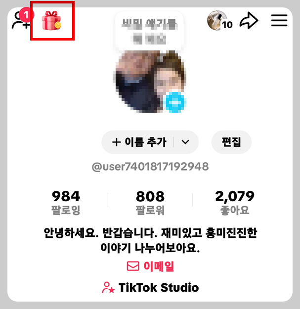 틱톡 화면 오른쪽 아래 프로필을 누르면 화면이 바뀌게 되는데요.