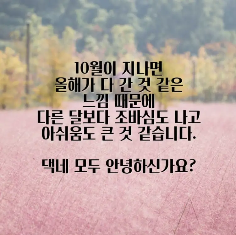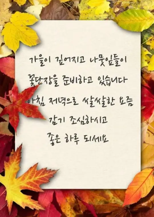 엊그제만 해도 더웠는데 이젠 완연하게 가을이 왔네요. 따뜻한 마음과 가을 정취를 담은 다채로운 10월 인사말입니다. 다양한 상황과 관계에 맞춰 사용해 보세요.