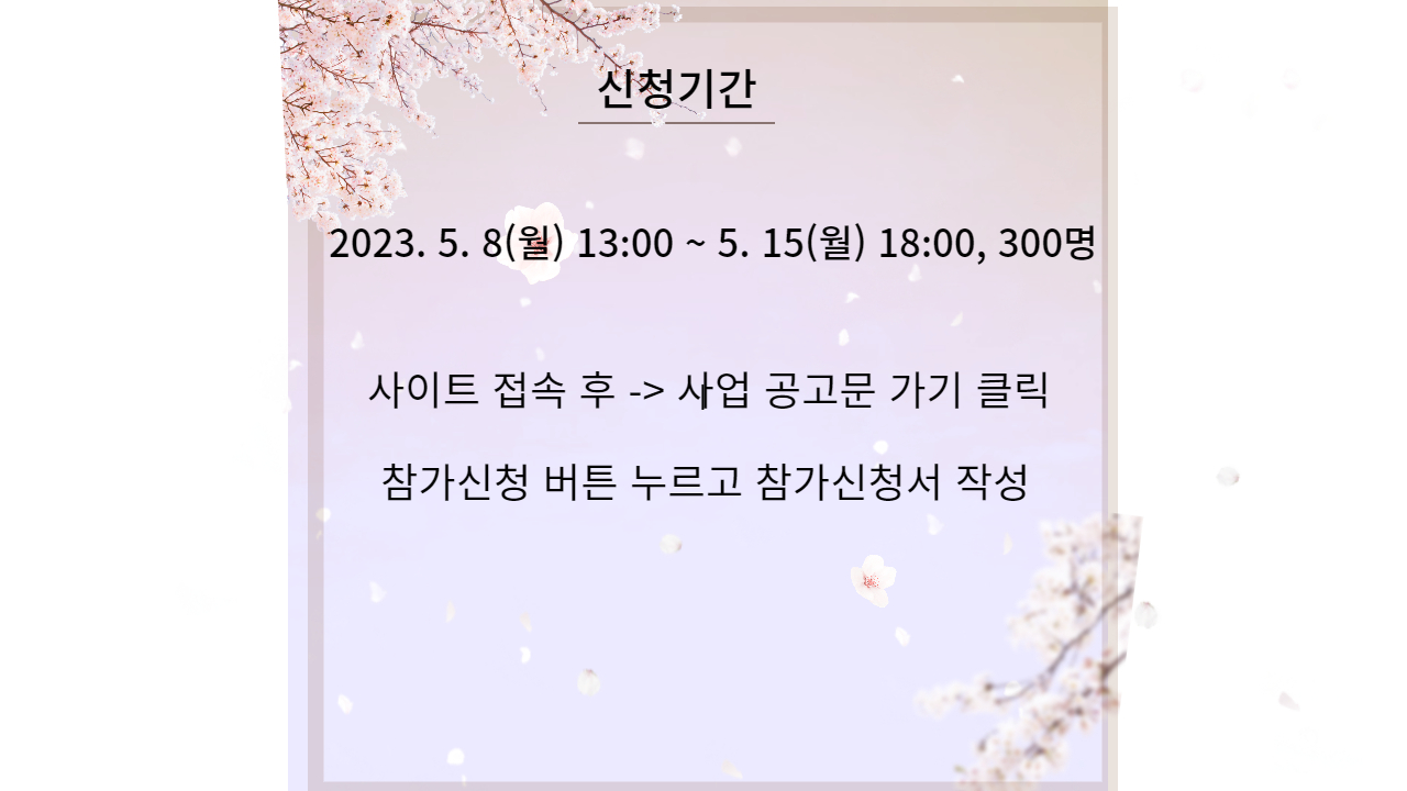 2023년 1차는 마감되었으며 이번 5월에 2차가 남아있으니 꼭 신청하셔서 100만 원 지원받으면 좋겠네요.