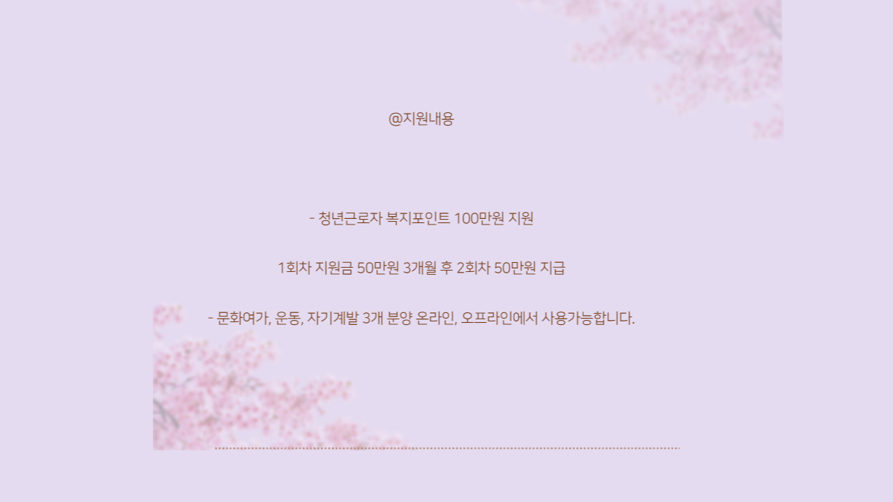 - 문화여가, 운동, 자기 계발 3개 분양 온라인, 오프라인에서 사용가능합니다.
