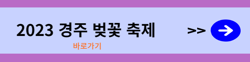 1. 2023 경주 벚꽃 축제 : 3월 말부터 4월 초까지 개최하는 경주 벚꽃 축제. 경주에서 벚꽃과 함께 다양한 이벤트를 즐길 수 있습니다. 대릉원 돌담길뿐만 아니라 경주의 숨어있는 다양한 벚꽃 명소 속으로 관광객을 초대합니다.