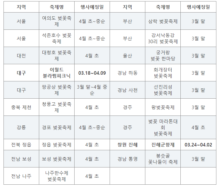 2023 벚꽃 개화 시기 지역별 축제 일정 알아봅시다.