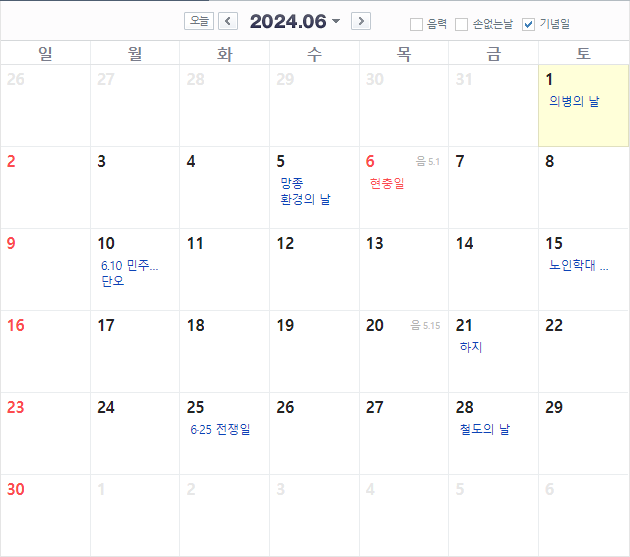 1. 6월 6일이 목요일 현충일이어서 7일 금요일에 연차 쓰면 5일 휴가입니다.